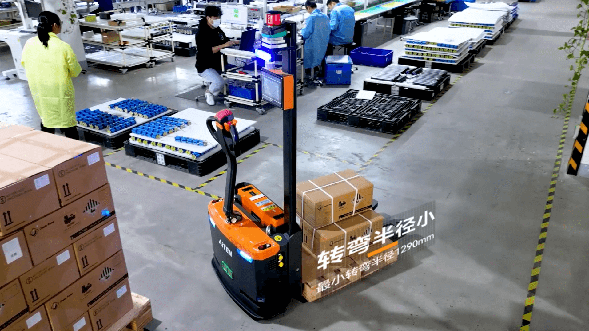 协作机器人无人叉车将实现人机交接,例如自动叉车将托盘运送到人工包装站。